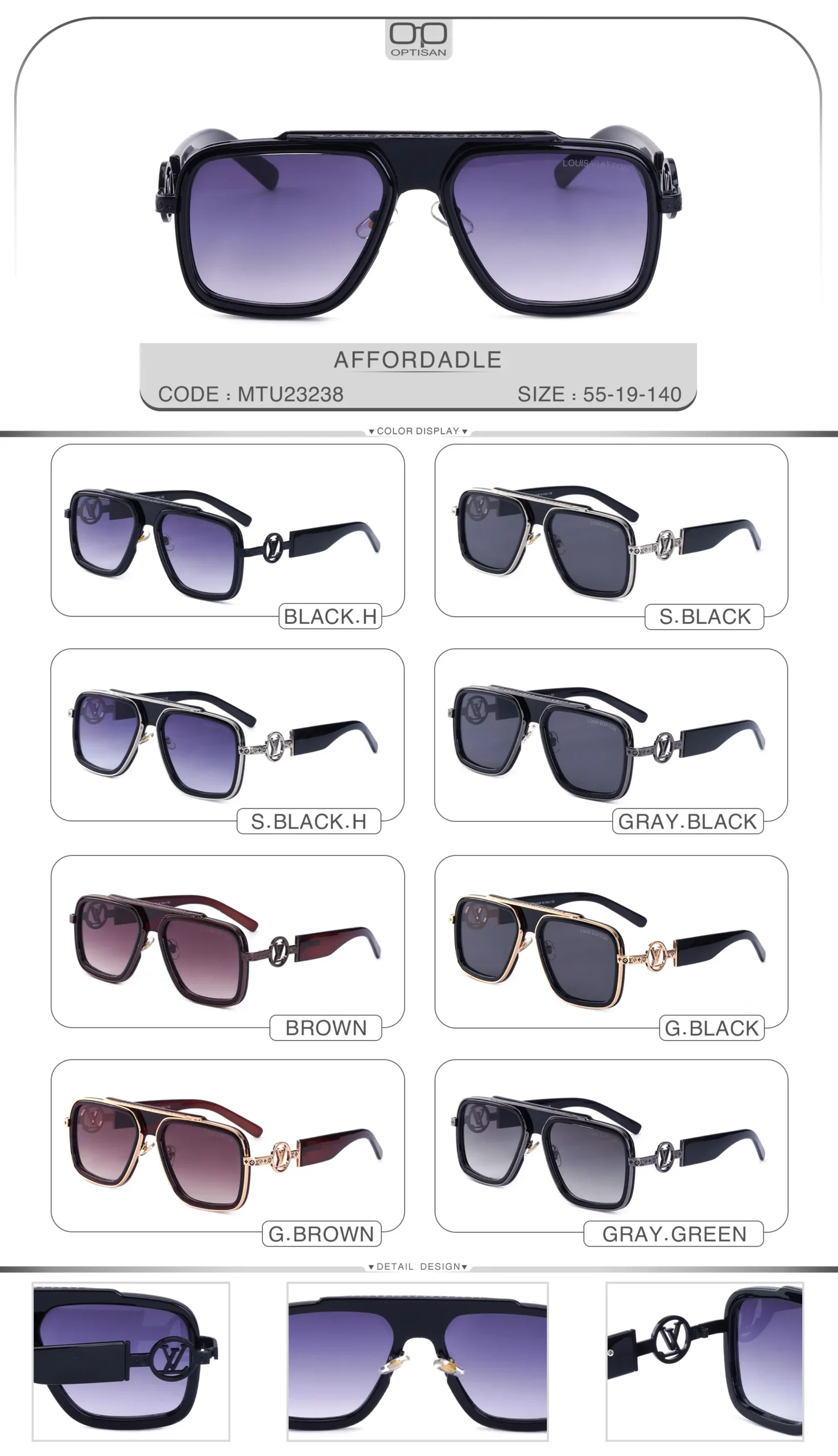 | رنگ | خاکستری سبز, خاکستری مشکی, طلایی قهوه ای, طلایی مشکی, قهوه ای, مشکی های لایت, نقره ای مشکی, نقره ای مشکی هایلایت |